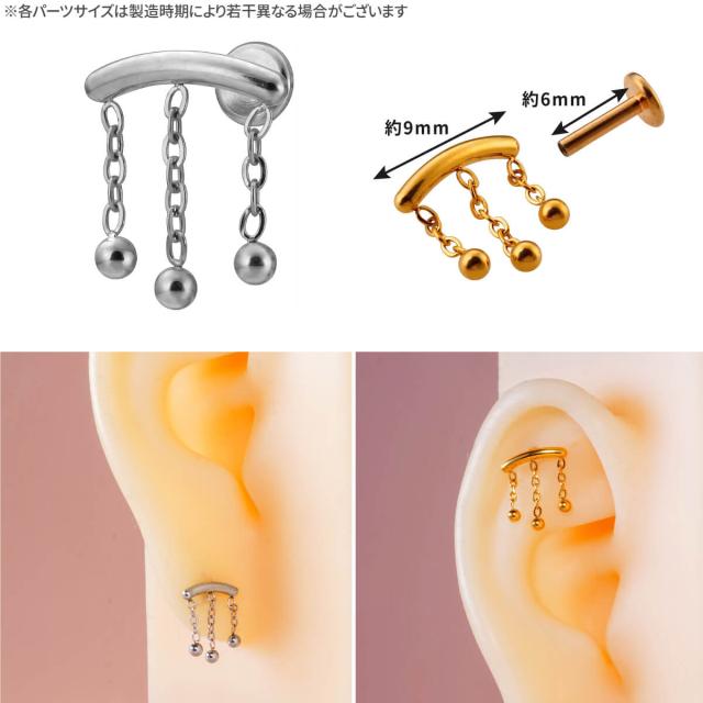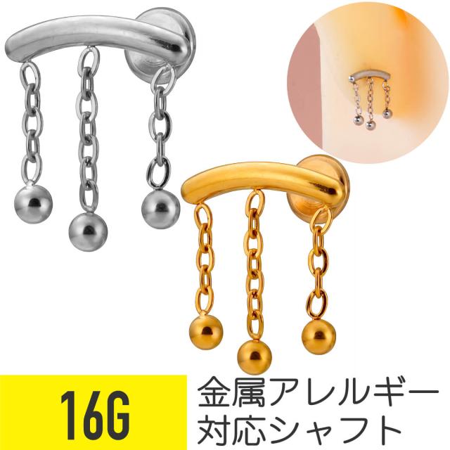 メタルバー チェーン ボール ラブレット 16G サージカルステンレス シルバー ゴールド イヤーロブ ヘリックス 軟骨ピアス ボディピアス