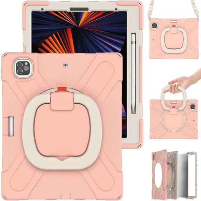iPad ケースカバー 耐衝撃 頑丈 360度回転スタンド ハンドル付き 虹色 米軍MIL資格 アイパッド ケース ペンシル収納 調節可能ハンドストラップと肩掛けー付き 落下防止 アウトドア 子供 仕事用 (iPad Air 13/Pro 12.9, コーラルピンク)