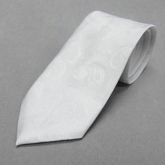 フォーマルネクタイ 白 ペイズリー 結婚式・披露宴 ポリエステル100% 日本製 メール便可 KZ-FNP03