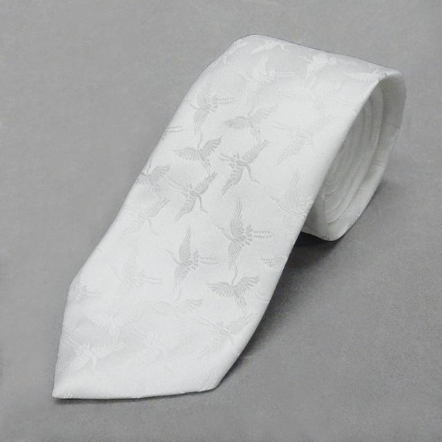 フォーマルネクタイ 白 鶴/つる 結婚式・披露宴 ポリエステル100% 日本製 メール便可 KZ-FNP09