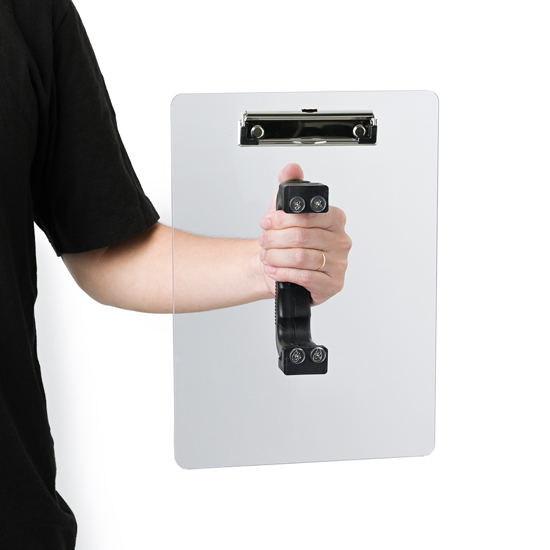 シールドは片手で保持できますので、空いた手に催涙スプレーや警棒を握ることも可能です。まさかの場合に現場に備えておけば安心です。