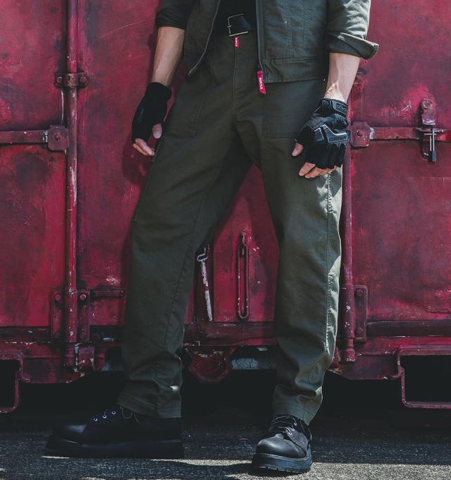 スリムフィットなメインカーゴとゆったりと穿ける適度なリラックスカーゴ2型のパンツ展開と耐久性とストレッチ性に優れるヘビーCVC素材がハードなワークシーンのパフォーマンスを最大化する