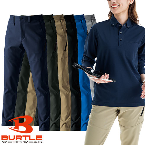 作業服 パンツ スラックス バートル BURTLE パンツ 9713 作業着 通年 秋冬 ストレッチ 男女共用 おしゃれ カッコいい 人気 ワーク アウトドア ディリー タウンユース 制電 形態安定 エコ リサイクル