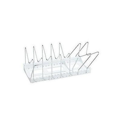 かさばりがちなフライパン・鍋・フタをスッキリ収納できるフライパンスタンド。縦置きでスリムに収納できる。大きいフライパンは斜めに置いて収納できる。