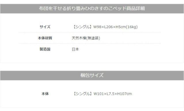 国産のヒノキ材を贅沢に使用した折り畳み式のスノコベッドです。
