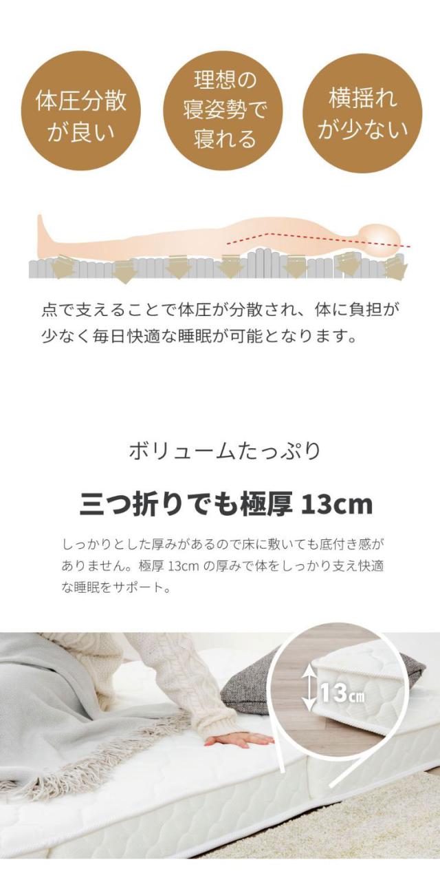 マットレス シングル 薄型三つ折りポケットコイルマットレス 敷布団 敷き布団 マット 寝具 インテリア 家具 M6071 S 三つ折りポケットコイルマットレス シングルサイズ Sサイズ(代引不可)【送料無料】