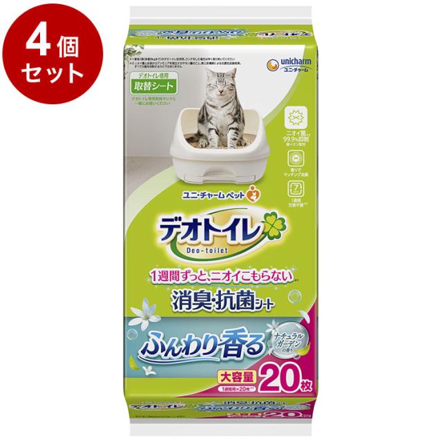 【4個セット】 ユニチャーム デオトイレ ふんわり香る消臭・抗菌シート ナチュラルガーデンの香り 20枚 x4 デオトイレ用シート 猫用シート システムトイレ用 猫用トイレ 猫トイレシート【送料無料】