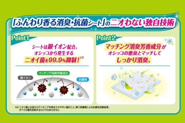 ・抗菌剤入りなので、アンモニア臭(悪臭)の発生を防ぎます。マッチング消臭芳香成分がオシッコの悪臭とマッチしてしっかり消臭