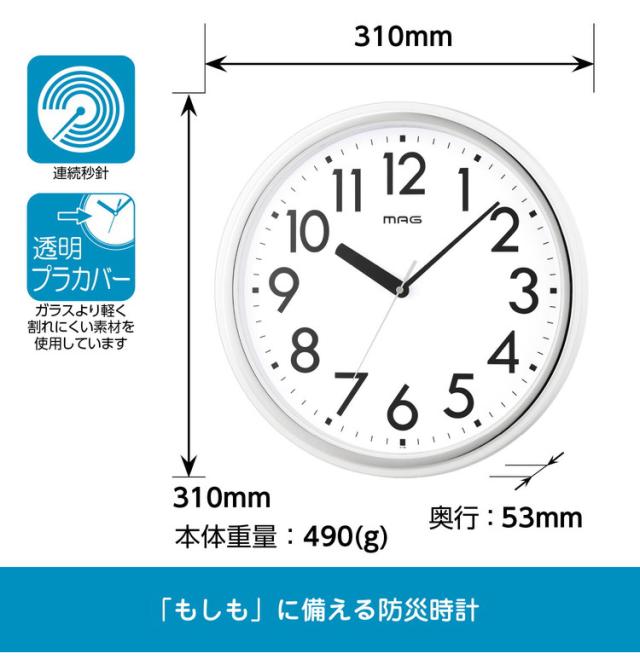 MAG掛時計 プラターフ MAG マグ 時計 掛け時計 掛時計 おしゃれ オシャレ インテリア アナログ時計 アナログ 軽くて壊れにくい 防災時計 防災 W-798 WH-Z