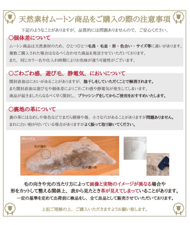 ・日頃のお手入れで長くお使いいただけますのでムートンお手入れページをご確認ください。