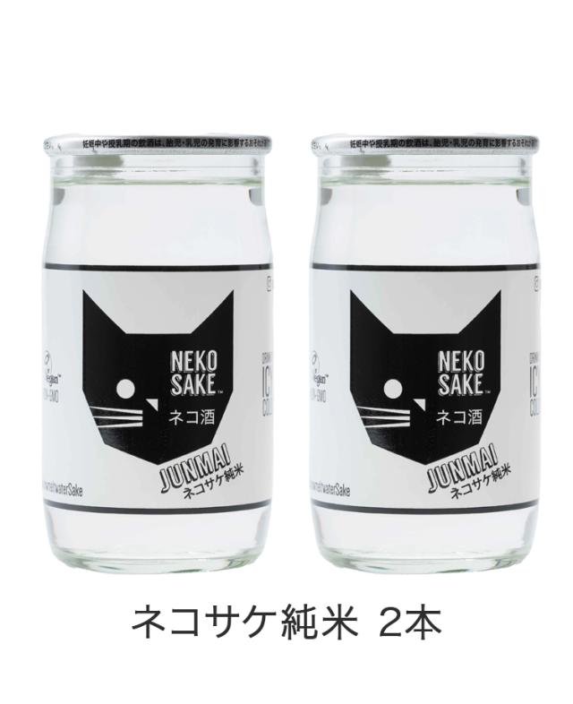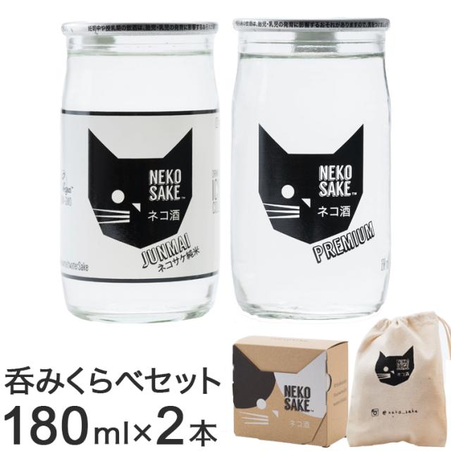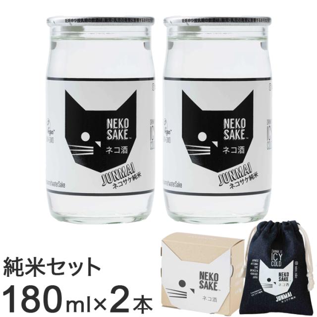 ネコサケ純米セット 日本酒 清酒 純米酒 カップ酒 一合 180ml 北海道 ネコ 猫 ねこ ギフト ラッピング プレゼント 手土産 化粧箱 巾着付 Kカンパニー NEKOSAKE ネコ酒 国産米 軽口 2本【送料無料】