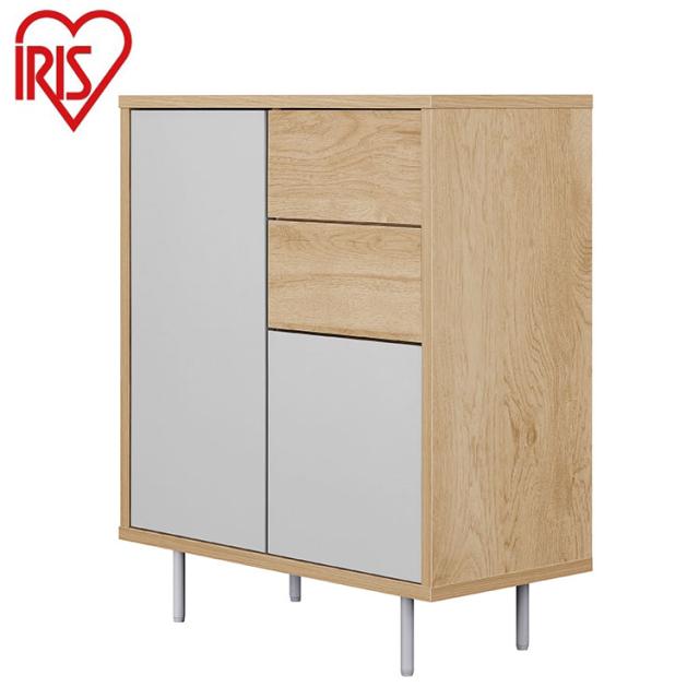 アイリスオーヤマ リビングキャビネット 幅59 脚付き LRCS-590 ナチュラル/グレー リビングボード キャビネット サイドボード IRIS OHYAMA(代引不可)【送料無料】