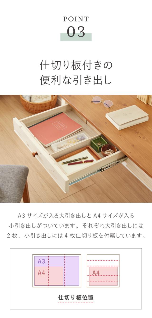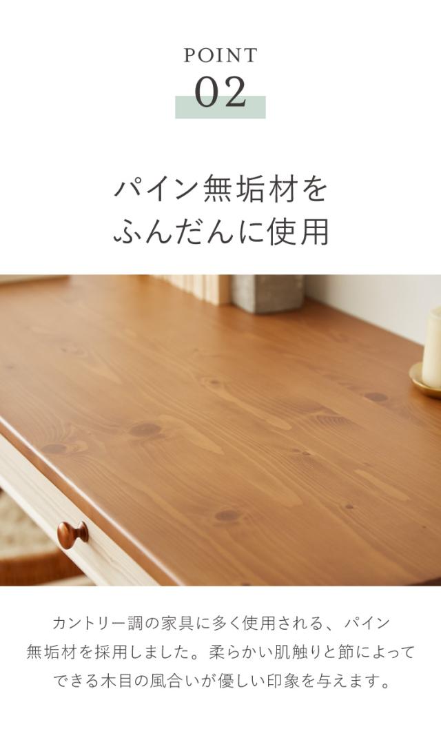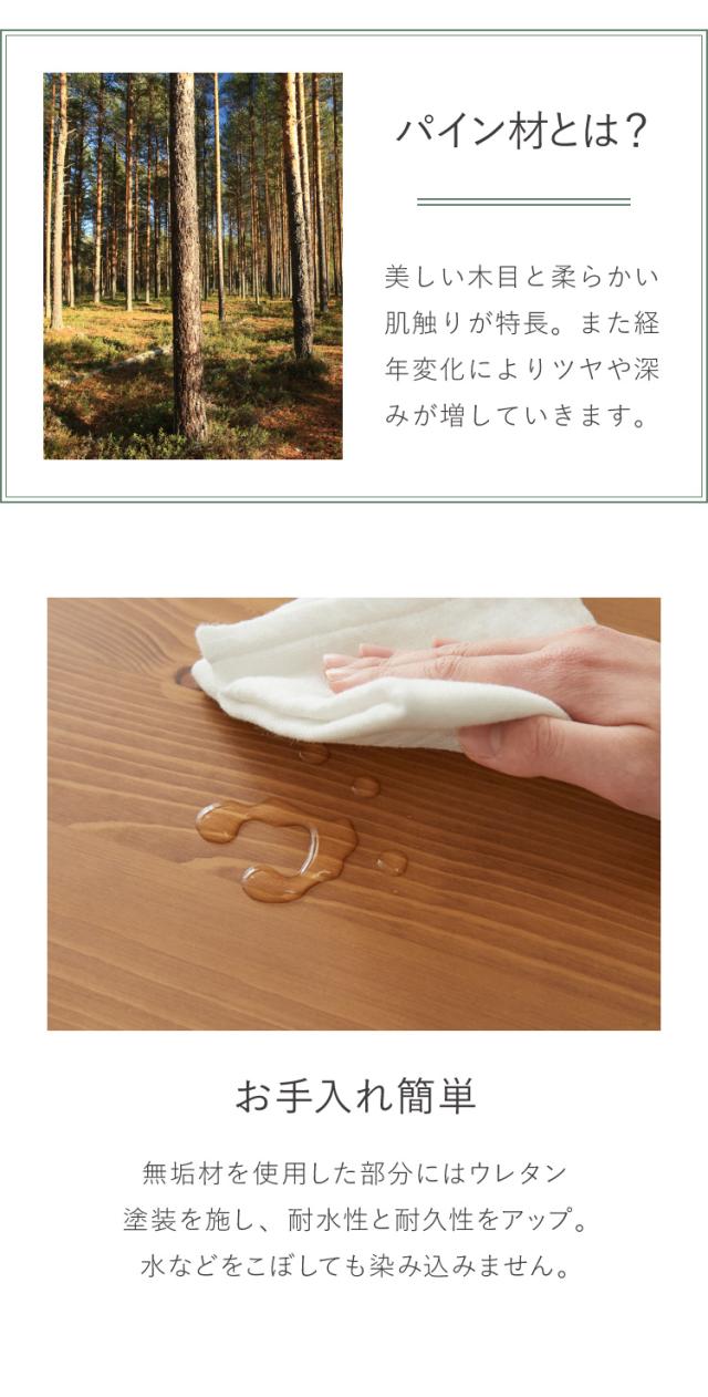 ・天板はパイン無垢材で、節やはっきりとした木目が楽しめます。