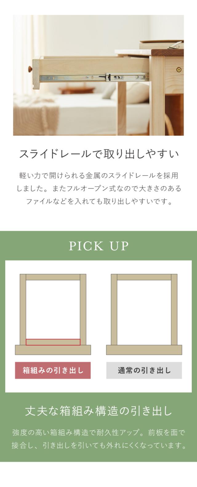 天板・引出し前板・脚:パイン無垢 ウレタン塗装