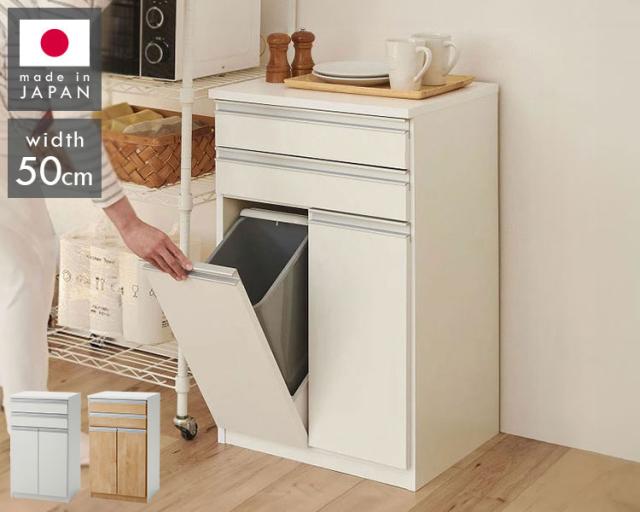 ゴミ箱 隠す収納 キッチンカウンター 2分別 蓋が自動開閉 スライドレール付き完成品 日本製 ペールワゴン ペールストッカー ダストボックス レンジ台 レンジラック(代引不可)【送料無料】