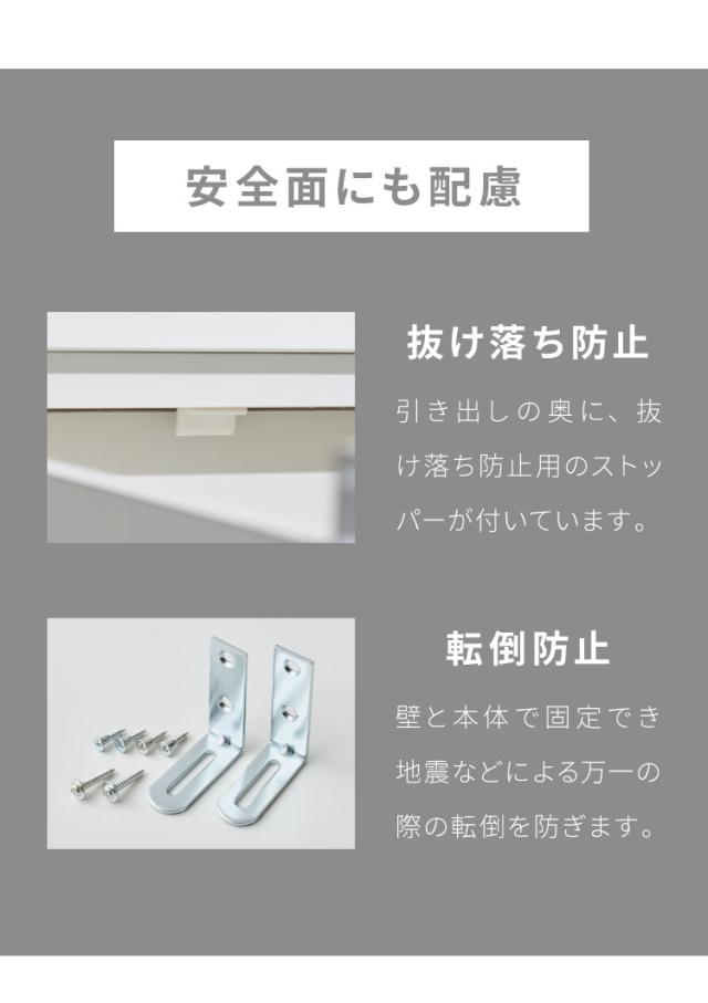 小物の収納に便利な小引出しと、調味料等のストックに便利な大引出しで、使い勝手の良い収納が可能。