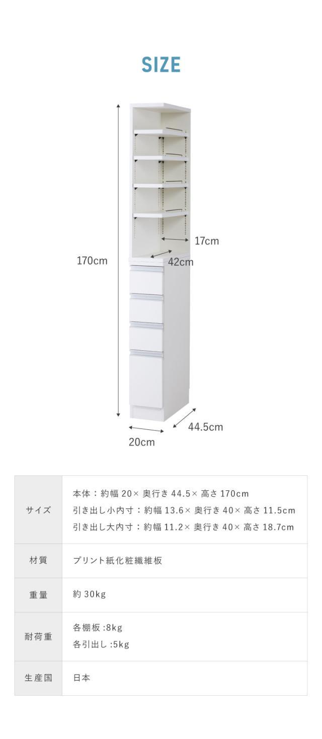 幅20cm/オープン+引き出し収納