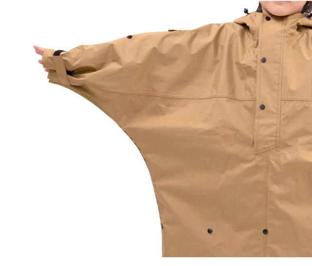 かぶりタイプで着脱が楽なキッズ用レインポンチョです。しっかり防水なのに軽い着心地で、お子様の負担になりません。また成長の早いお子様に対応できるよう、サイズ調整用のボタンを袖と裾につけることで、着丈・袖丈の調整を可能にしました。