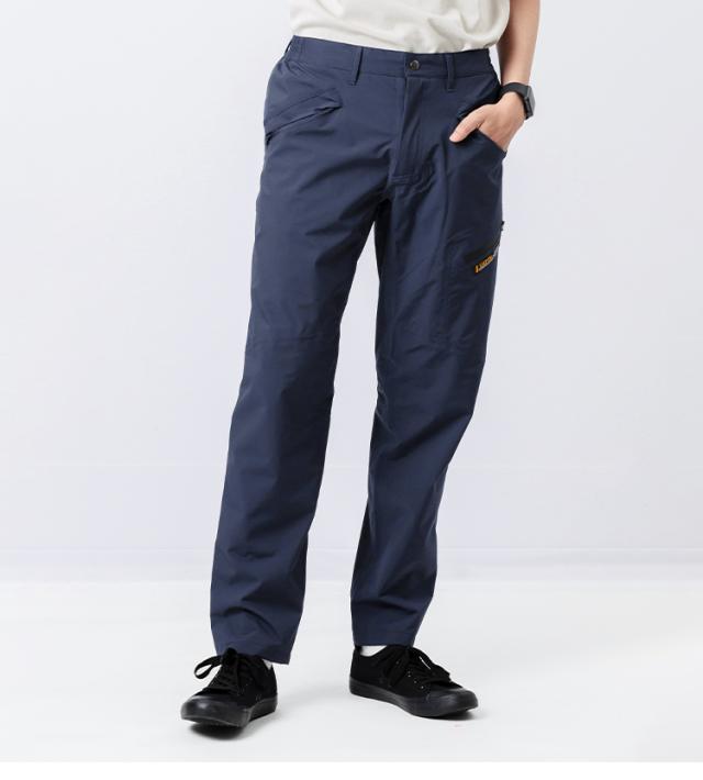 3層構造の全天候型パンツ。簡単な汚れは水を吹きかけるだけで落ち中への水のしみ込みもない。耐水圧15,000mm、透湿度25,000mmの高スペックなパンツ。ワークパンツのスタイルで着用でき、防水機能が備わっているので急な雨でもそのまま着用頂けるパンツです。