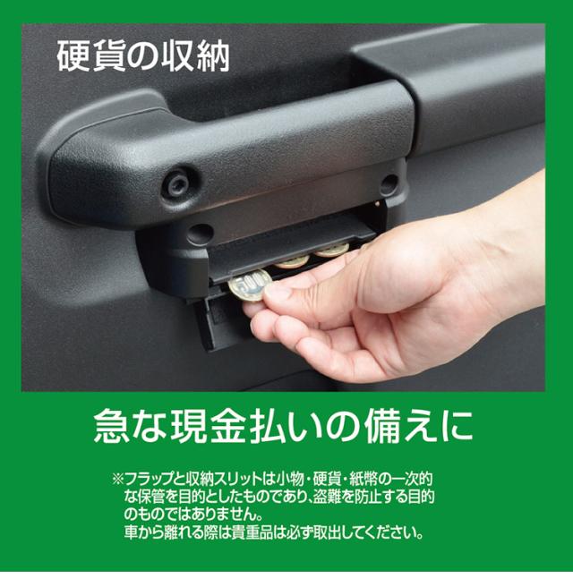 ●フラップを開けるとコイン(500 円硬貨×3枚)や紙幣が入れられる「収納スリット」付きです。