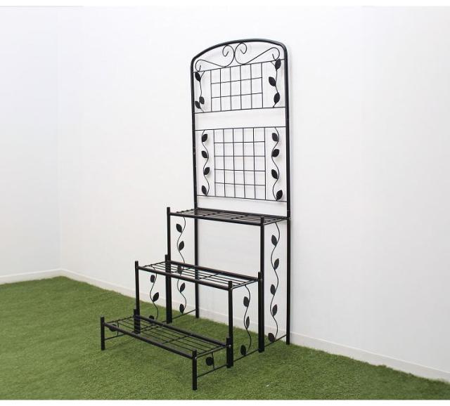 フェンス付き フラワースタンド スリム 3段 幅60cm ガーデンフェンス ラティス アイアン フェンス ガーデニング 花台 棚 ガーデン ハンギング ベランダ 目隠し プランターラック スチール(代引不可)【送料無料】