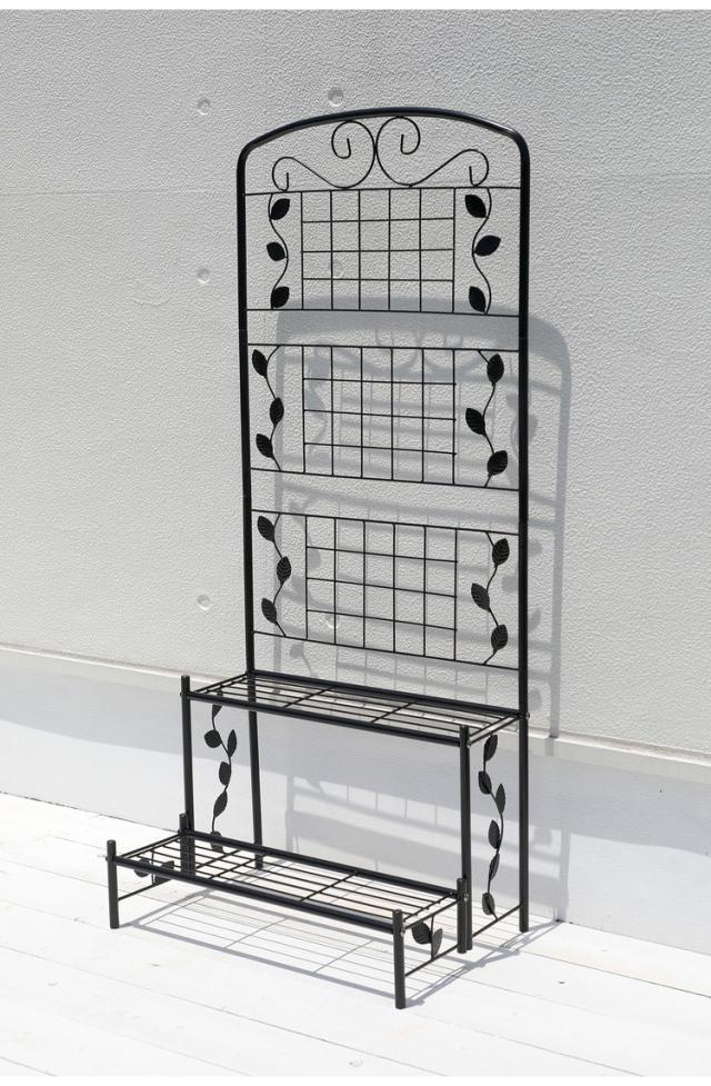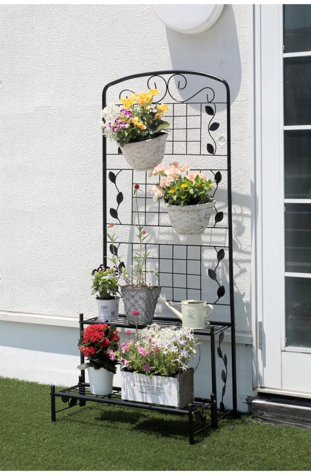 フェンス付き フラワースタンド スリム 2段 幅60cm ガーデンフェンス ラティス アイアン フェンス ガーデニング 花台 棚 ガーデン ハンギング ベランダ 目隠し プランターラック スチール(代引不可)【送料無料】
