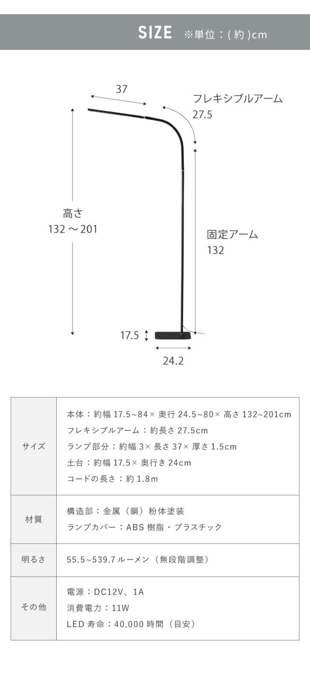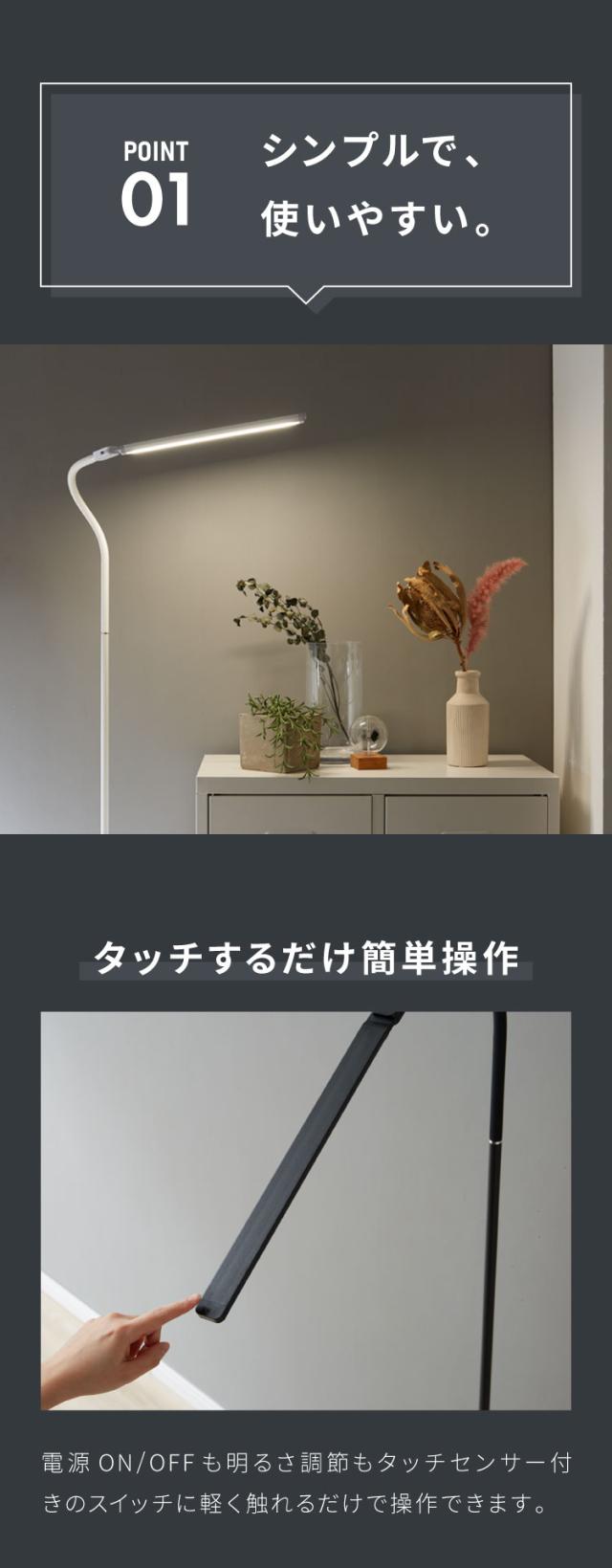・角度と明るさを自由に調整可能なフロアスタンドです。