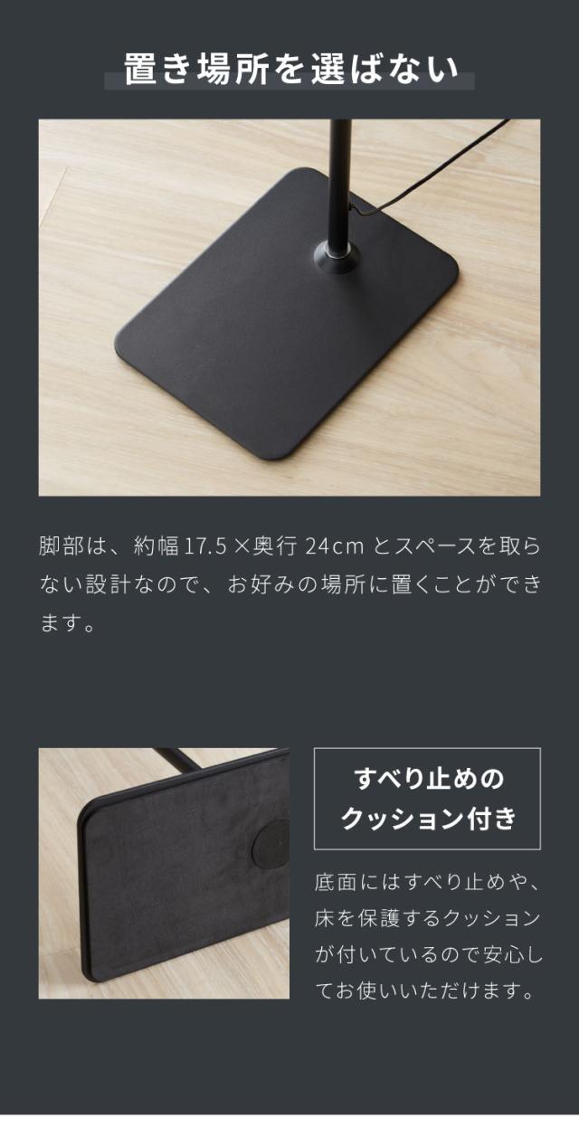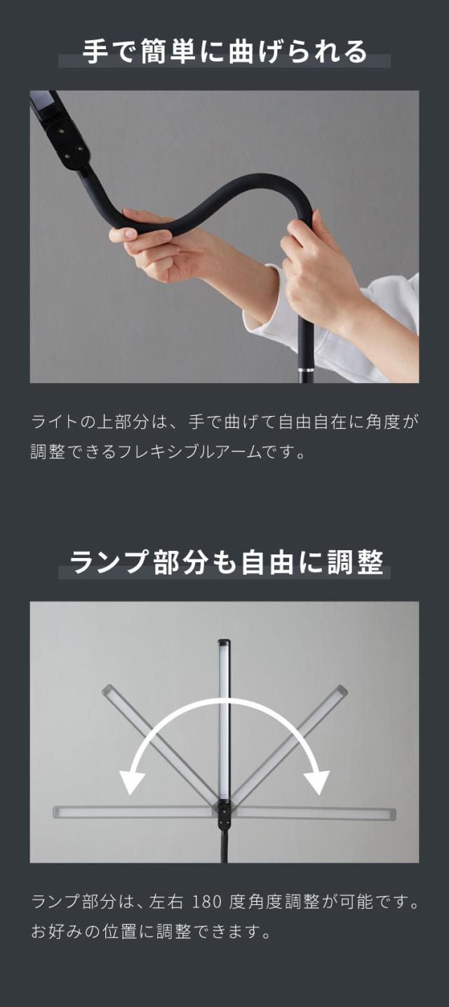 ・支柱部分は上下90度に、LEDランプは左右に180度可動できるので、好きな位置にライトを設置できます。