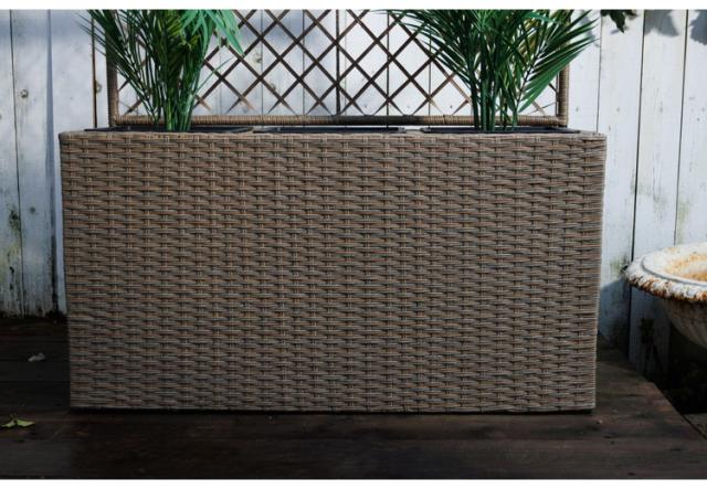 ・目隠しや仕切りに使える、フェンス付きラタン調プランターボックスです。