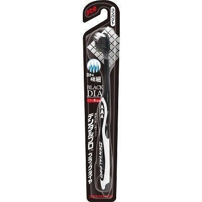 デンタルプロブラックダイヤにコンパクトヘッド新登場!穴数1.7倍に増やした超密植毛!「黒の特殊毛」に加え、「フッ素配合ダイヤ毛」を使用。4つの角ので歯面の歯垢を効果的に除去。コンパクトヘッドで隅々まで磨ける。デンタルプロブラック史上最高の磨き心地です。