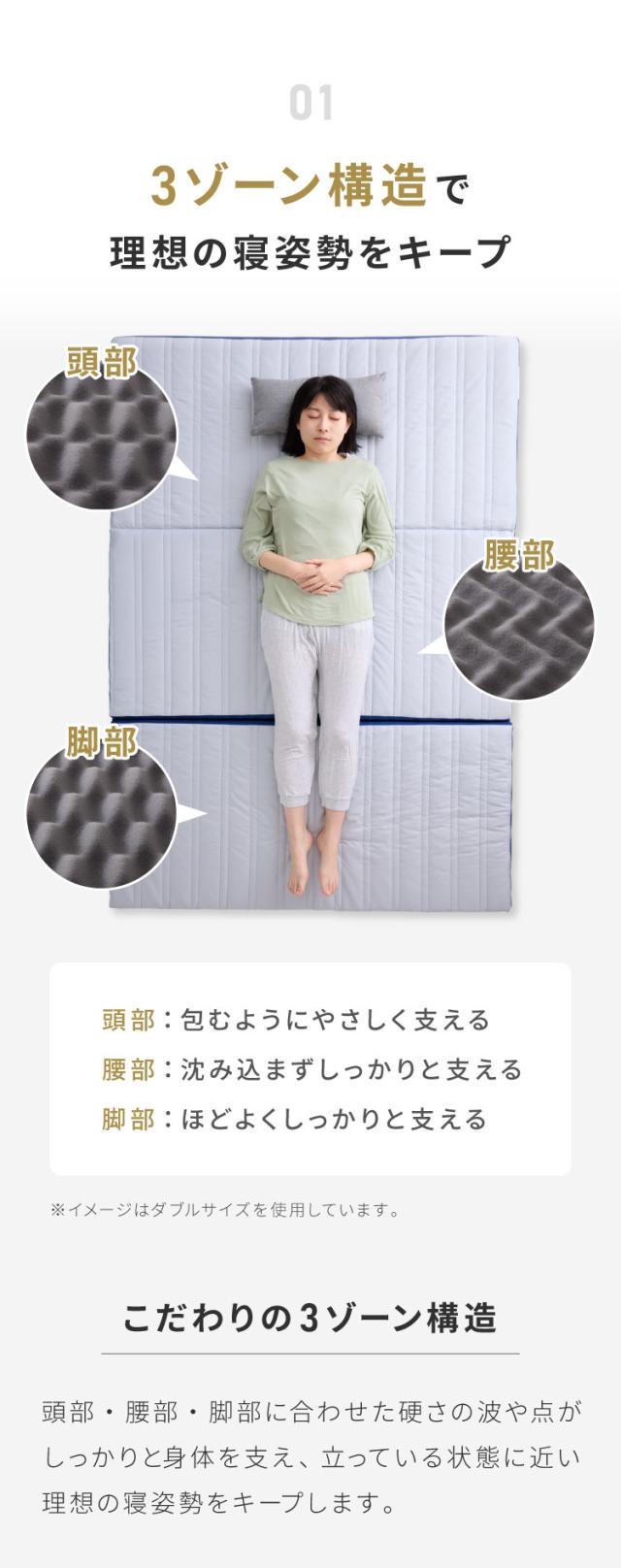3つのゾーンが身体に合わせ快適な寝心地と寝姿勢を実現する