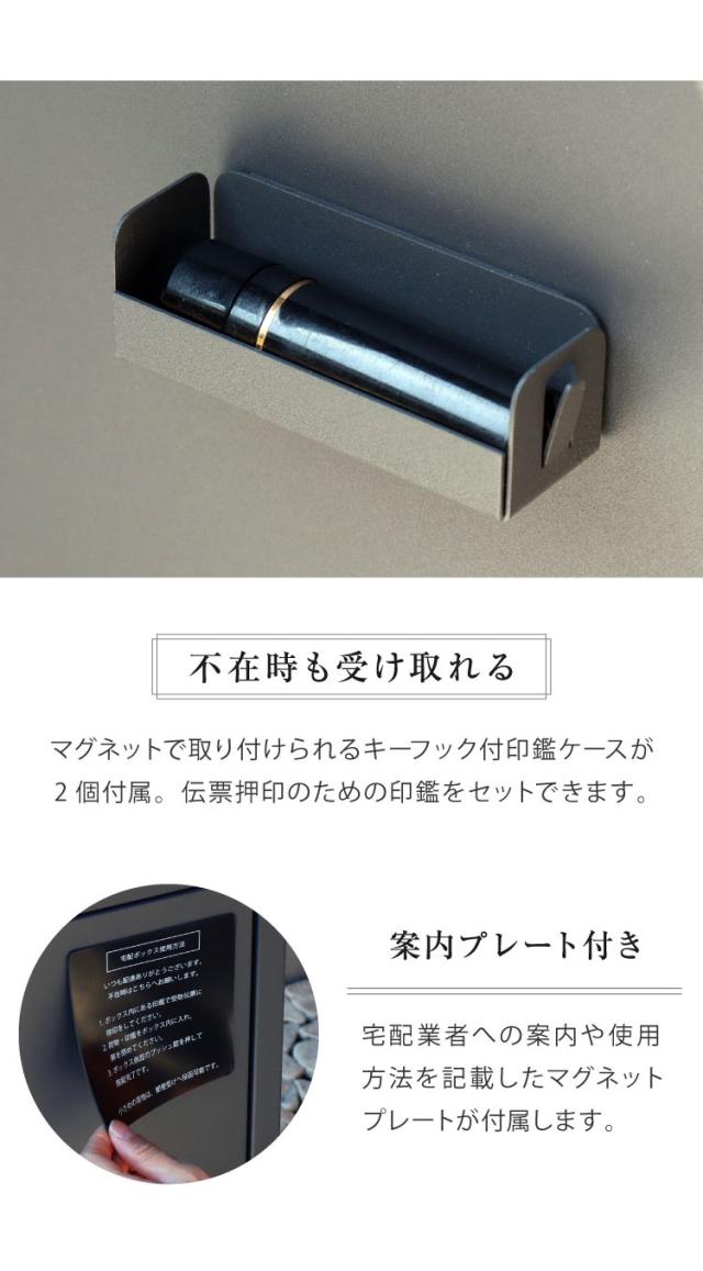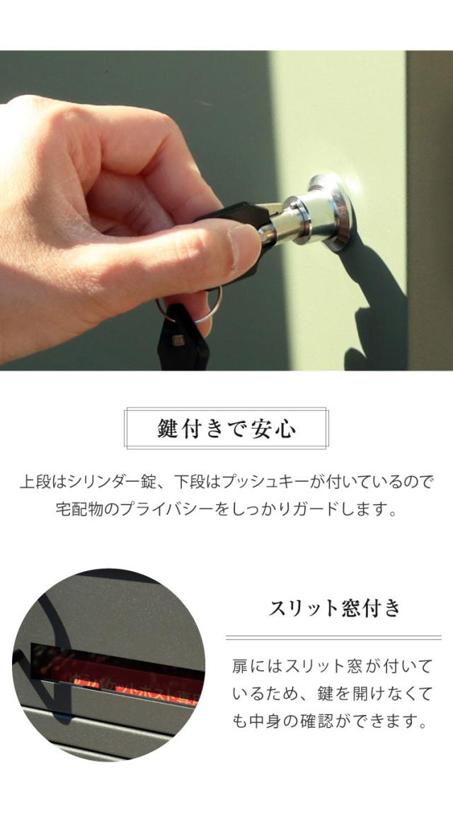 キーフック付印鑑ケースが2個付属しており、上段も下段も宅配ボックスとしてのご使用が可能です。