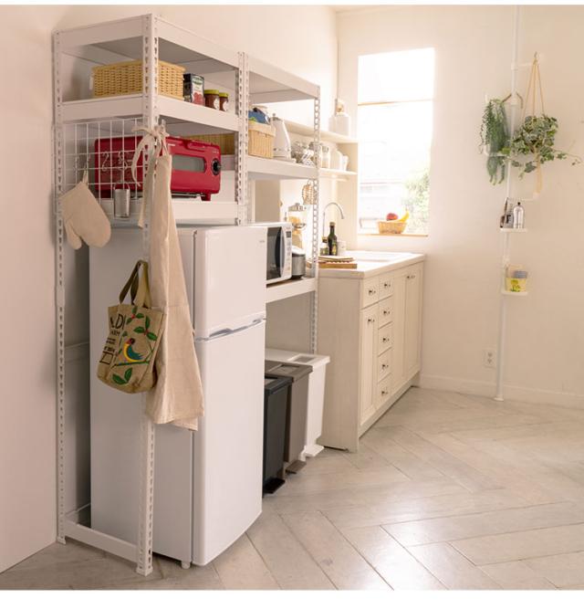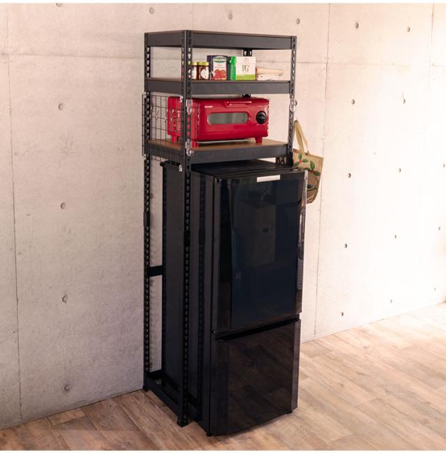 ランドリーラック 3段 幅62cm 冷蔵庫上 スチールラック キッチン 収納棚 収納ラック スリム おしゃれ キッチンラック スチールシェルフ オープンラック ステンレス 木製棚板 木目 リバーシブル(代引不可)【送料無料】