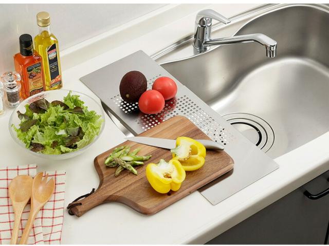 日本製 燕三条 シンクに渡せるフラット作業台 伸縮式 スペース拡張 ステンレス製 フラットサポートテーブル シンク上 作業台 調理台(代引不可)【送料無料】