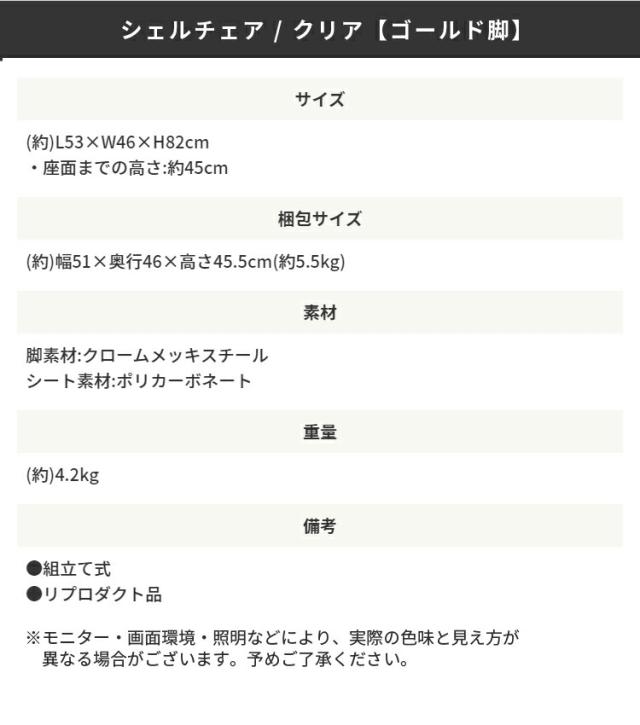 人気のシェルチェアにクリアカラー限定で《ゴールド脚》が追加登場です。