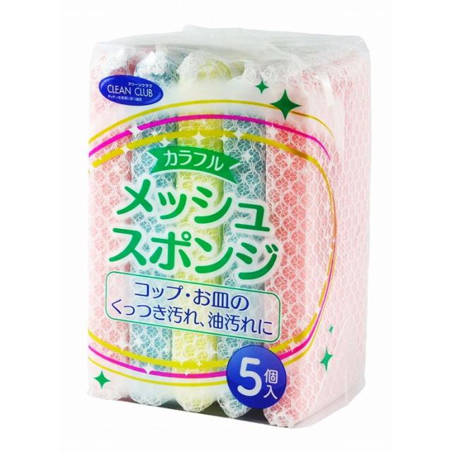 【単品8個セット】クリーンクラブ カラフルメッシュスポンジ5個 大和物産(代引不可)