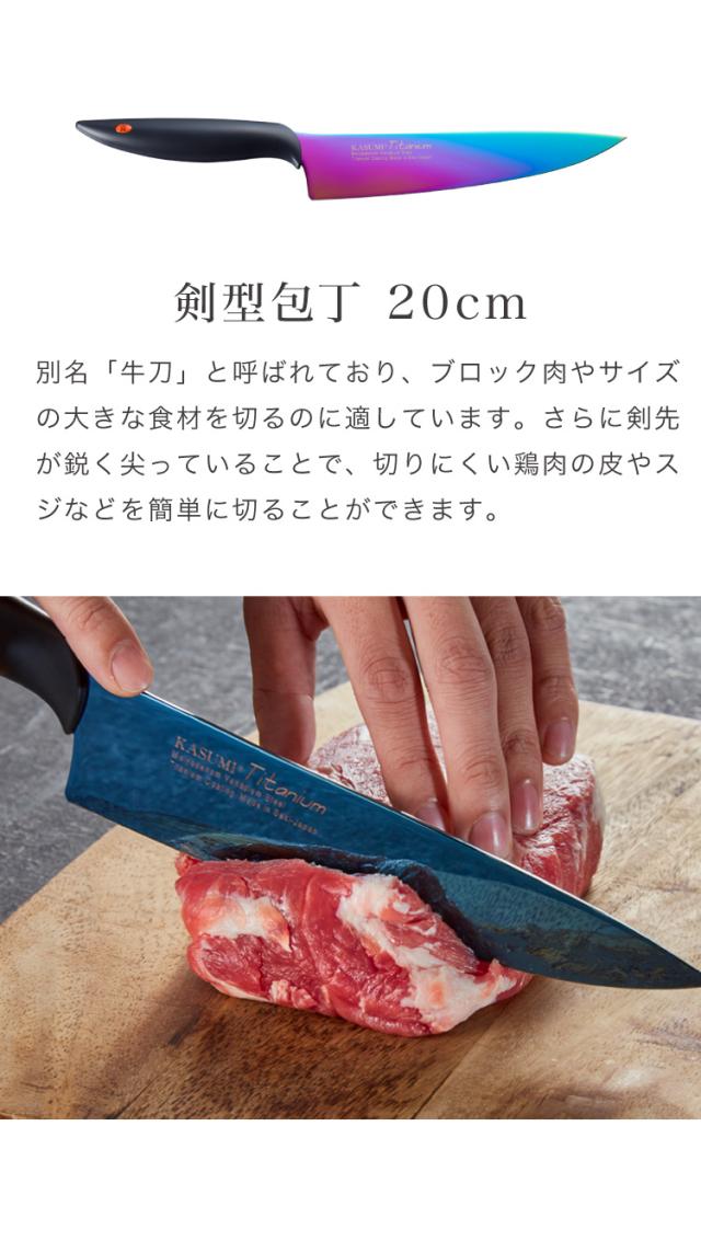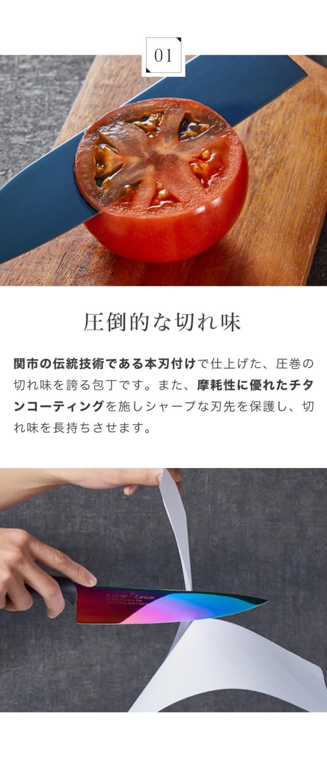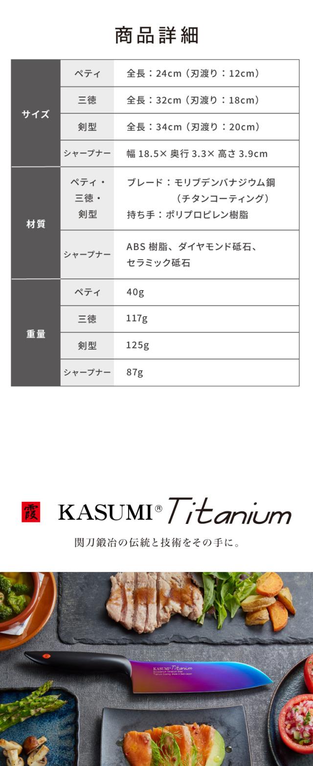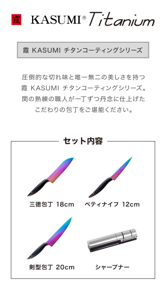 スミカマ 日本製 霞 KASUMI チタニウム 三徳+ペティ+牛刀+シャープナー 4点セット