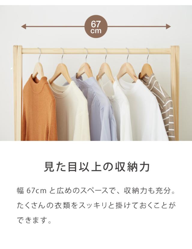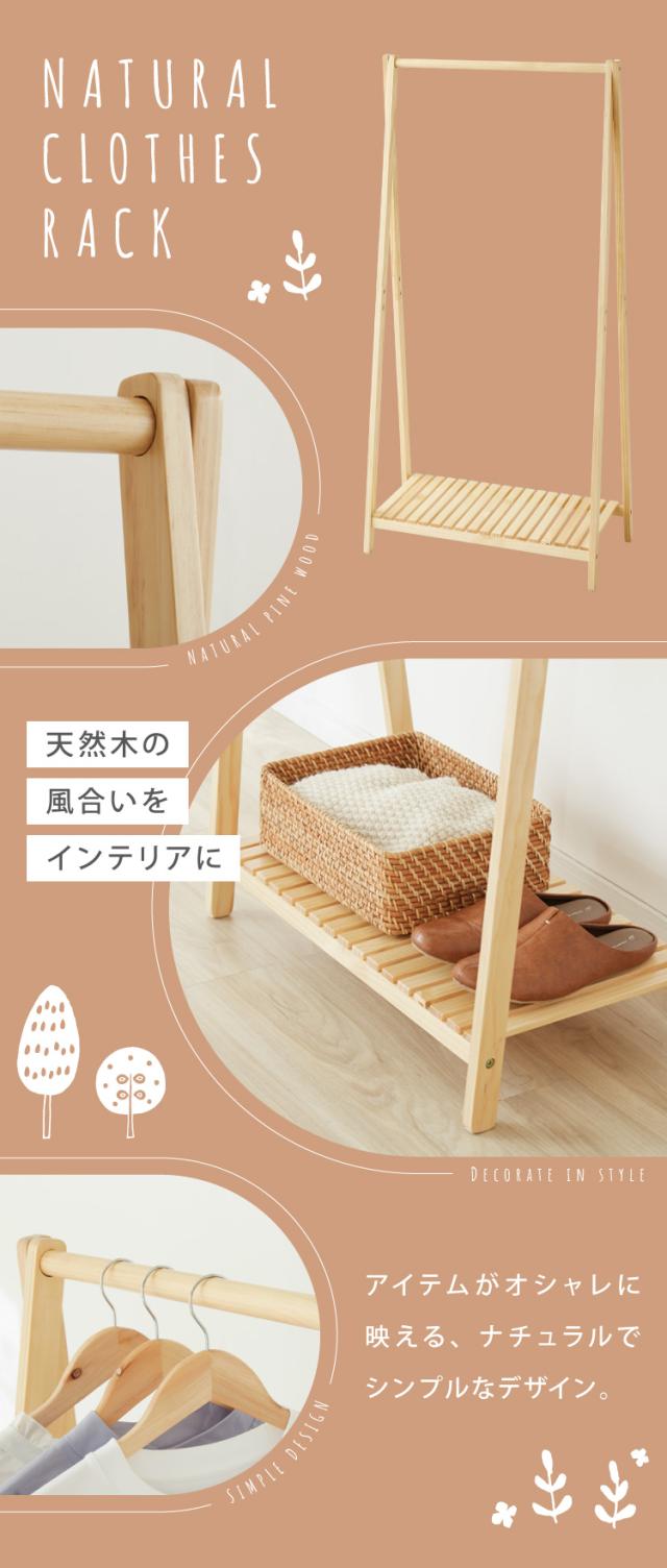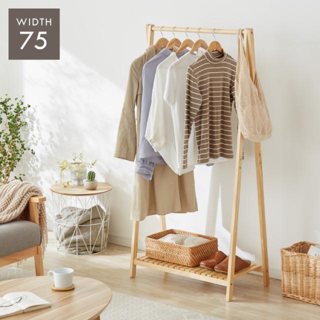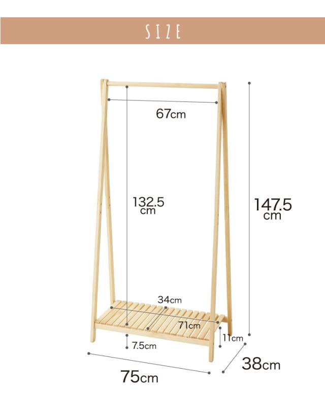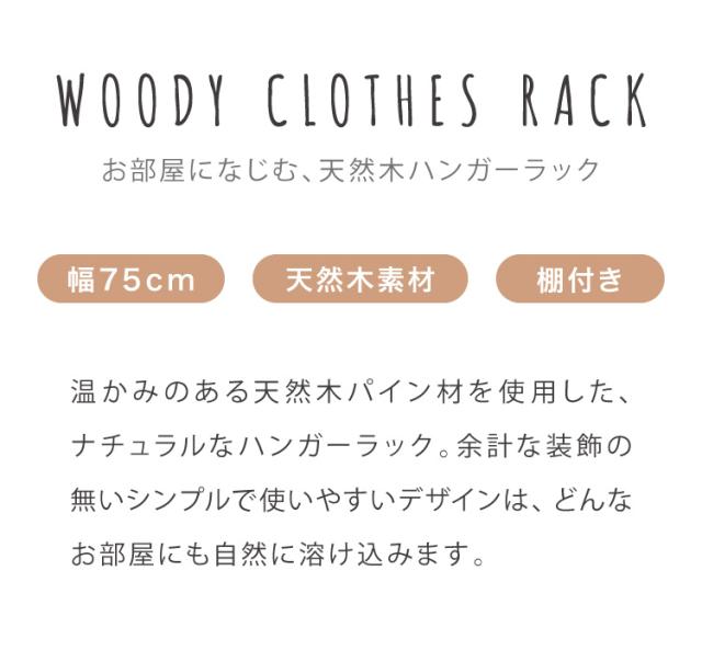 木製ハンガー棚付き 幅75cm 奥行38cm 高さ147.5cm ハンガーラック おしゃれ 棚付き 組立式 天然木 パイン材 シンプル(代引不可)
