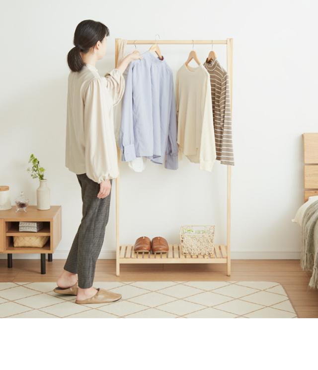 木製ハンガー棚付き