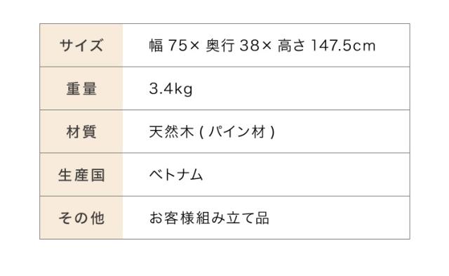 幅75×奥行38×高さ147.5cm