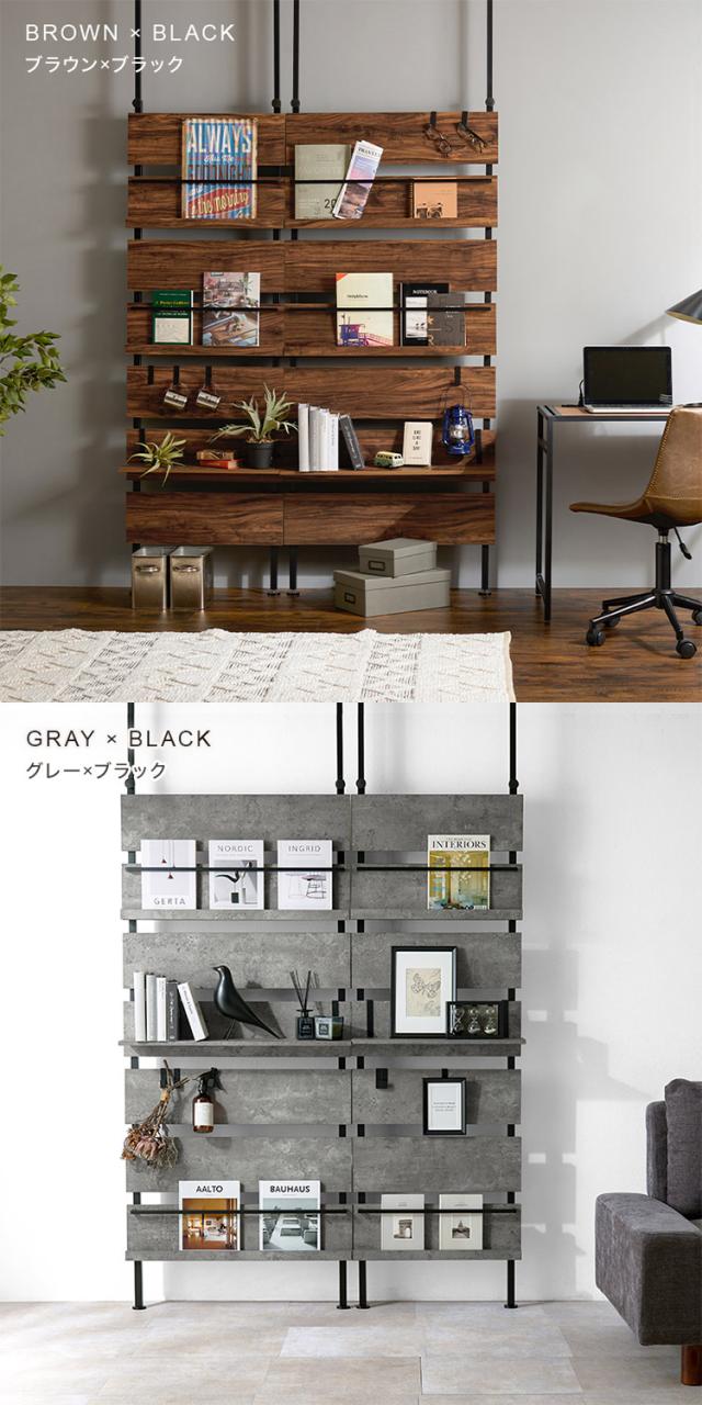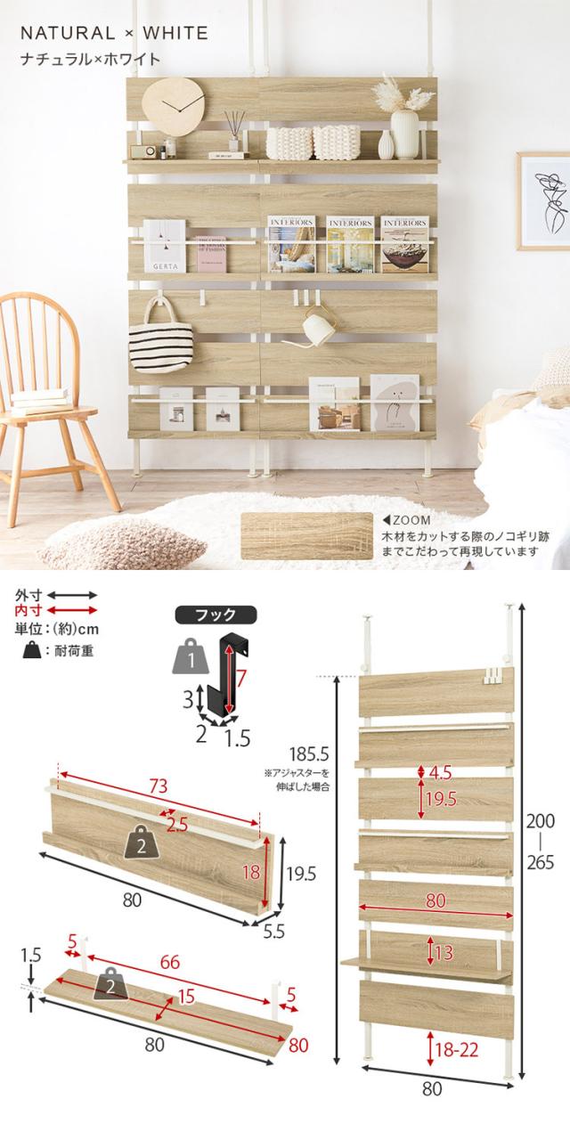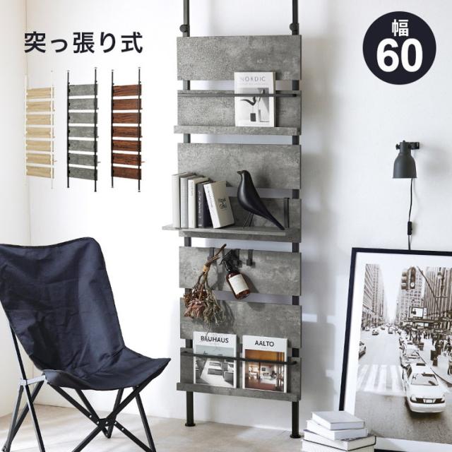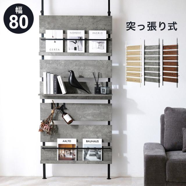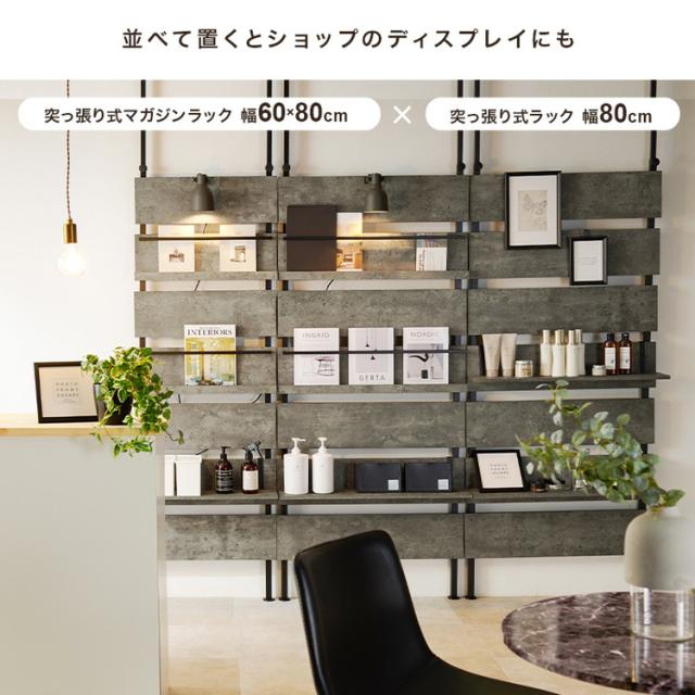 突っ張りマガジンラック 幅80 大理石調 木目調 つっぱり ラック おしゃれ 北欧 突張り 収納 棚 本棚 シェルフ パーテーション 間仕切り ウォールシェルフ 壁 伸縮 木製(代引不可)【送料無料】