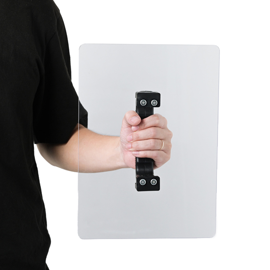 シールドは片手で保持できますので、空いた手に催涙スプレーや警棒を握ることも可能です。まさかの場合に現場に備えておけば安心です。