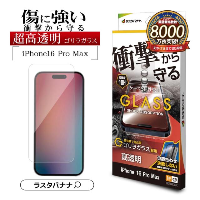 【送料無料】iPhone16 Pro Max ガラスフィルム 平面保護 高光沢 高透明 クリア 衝撃吸収 ゴリラガラス採用 0.33mm アイフォン 保護フィルム GSA4479IP467P ラスタバナナ