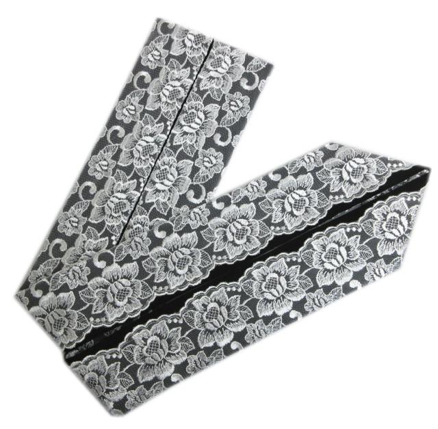 重ね衿 伊達襟 黒地 花柄模様白レース付 日本製 振袖 成人式 卒業式 袴 着物 訪問着 振袖用 はかま きもの 黒色