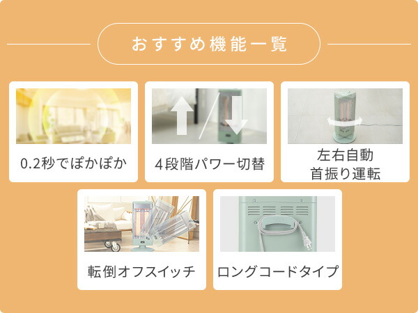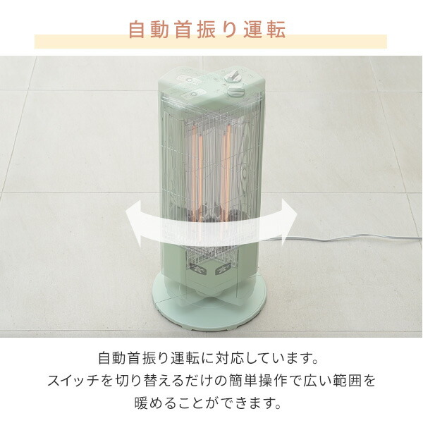 | 商品説明 | ●電源:100V(50/60Hz) ●発熱体:グラファイトヒーター ●切換スイッチ:250W/500W/750W/1000W ●自動首振り機能 ●安全装置:防災対応型 二重安全転倒OFFスイッチ(ボール式) ●コード長さ:約1.5m ●付属品:ちょうボルト3本 ●保証期間:本体1年/ヒーター2年 |