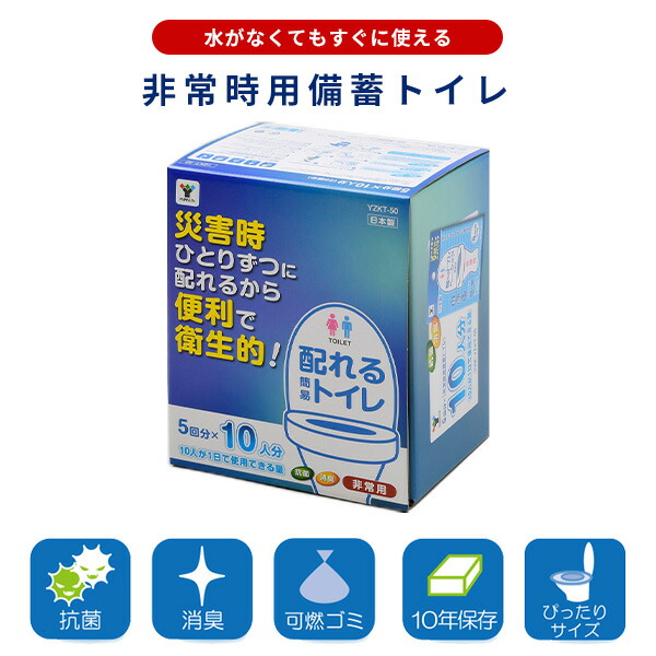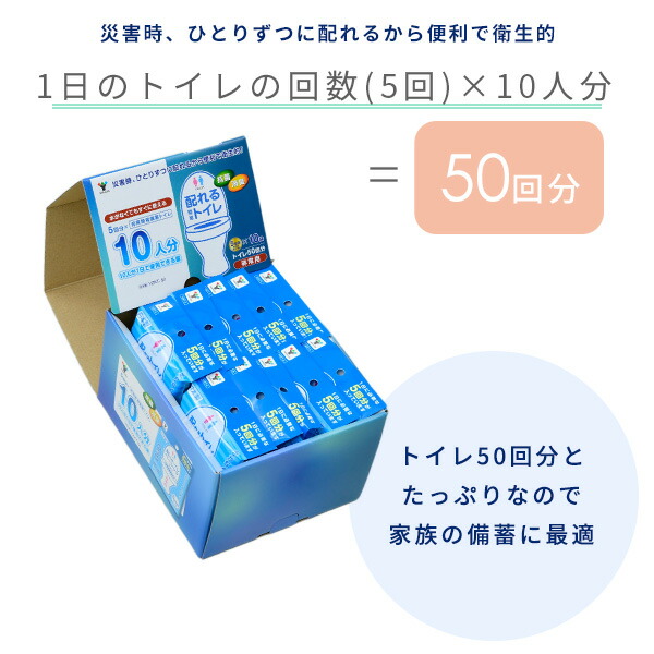 配れるトイレ 5回×10人分セット 非常用 水がなくてもすぐに使える YZKT-50 簡易トイレ 防災用品 防災グッズ 備蓄トイレ 災害トイレ 車 渋滞 ドライブ アウトドア 水なし 山善 YAMAZEN 【送料無料】