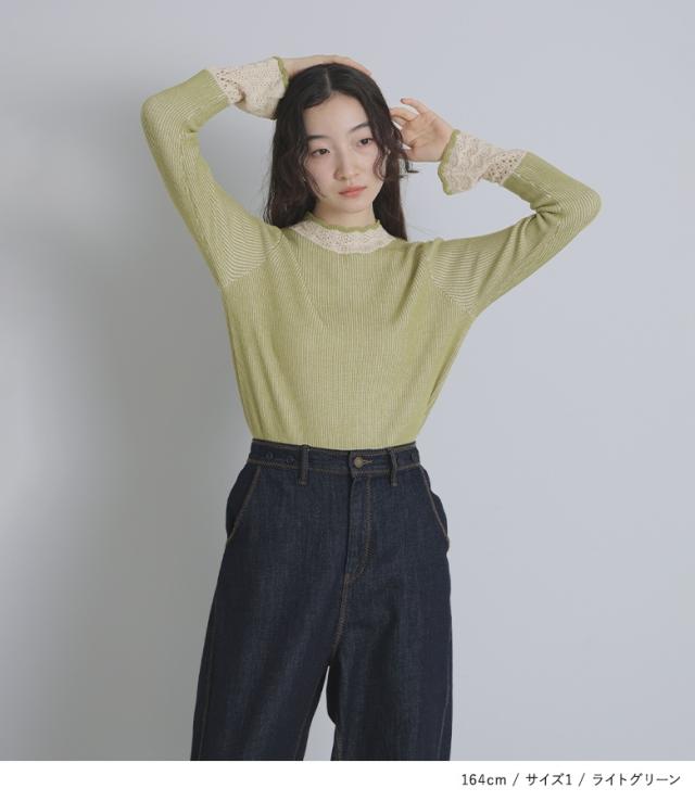 ニット レディース トップス セーター ニットトップス 長袖ニット 長袖 クルーネック レイヤード 重ね着 【TP】 ニット・セーター 袖コンニット 畦編み ハイネック 袖コンシャス 袖コン ミディ丈 ミドル丈 タックイン ウエストイン レース 配色 無地 透け感 おうちで洗える 秋 冬 秋冬 春 カジュアル レトロ クラシカル フェミニン ガーリー 可愛い系 大人女子 大人可愛い お洒落可愛い 大人カジュアル 上品 きれいめ Sサイズ Mサイズ Lサイズ LLサイズ 3Lサイズ XLサイズ 10代 20代 30代 40代 50代 60代 低身長 高身長 女子会 通勤 通学 お買い物 お出掛け 旅行 リゾート レジャー おしゃれ お洒落 トレンド 流行 デート 散歩 ショッピング somari imagination ソマリイマジネーション ナチュラル osharewalker オシャレウォーカー おしゃれうぉーかー グリーン 緑 ライトグリーン グレー 灰色[ID]13tm0g7