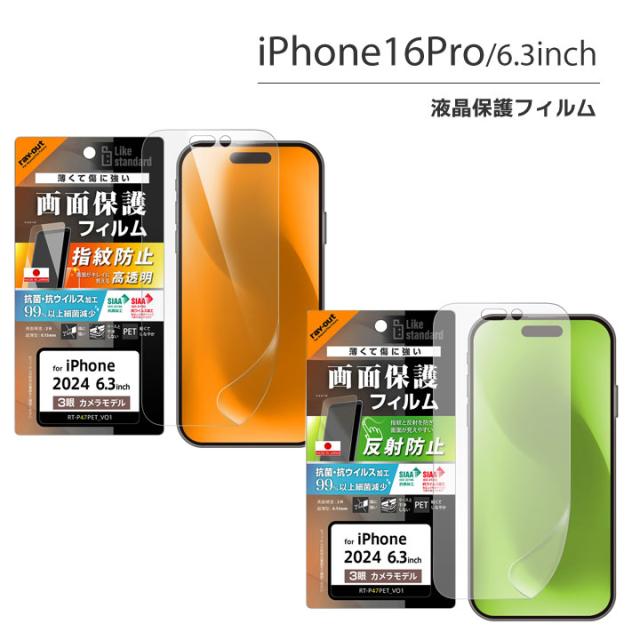 iPhone16Pro フィルム 指紋防止 光沢 反射防止 抗菌 抗ウイルス 液晶保護フィルム 画面保護 メール便送料無料