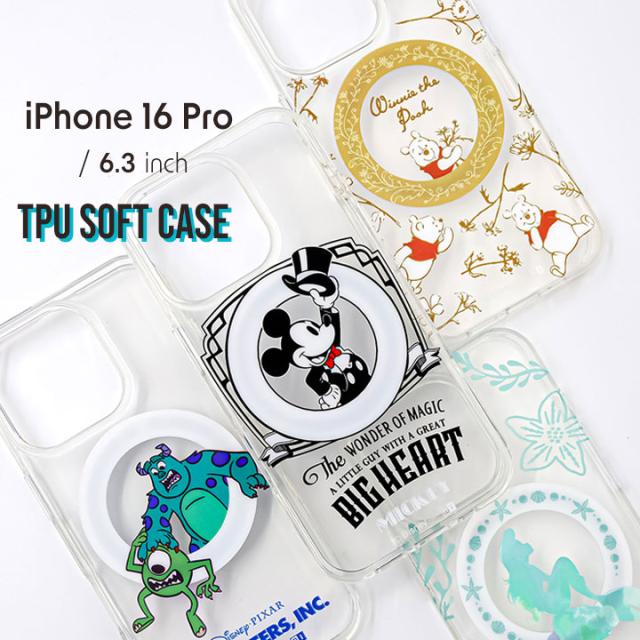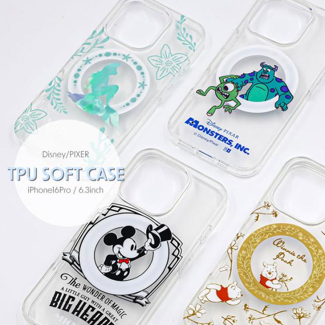 iPhone16Pro ぴかてる MagSafe対応 マグネットアクセサリー対応 衝撃吸収 バンパー TPUソフトケース ディズニー Disney ミッキーマウス アリエル くまのプーさん マイク サリー PIXER ピクサー メール便送料無料