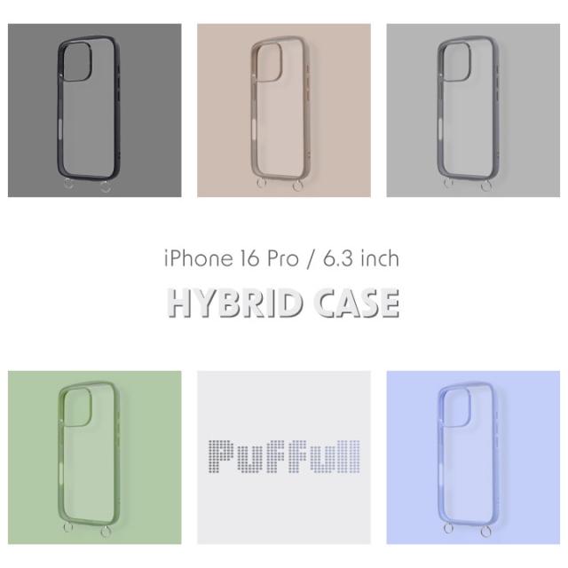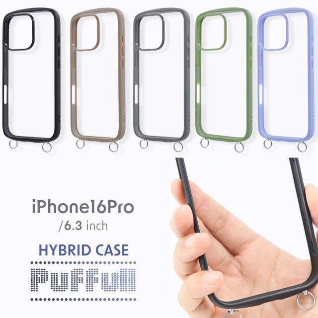 iPhone16Pro Puffull 耐衝撃 バンパー ストラップ金具付き ハイブリッドケース ブラック ベージュ グレー カーキ ペールブルー メール便送料無料